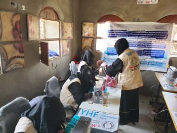 تحسين الظروف المعيشية للأسر النازحة من خلال التدريب على الخياطة ودعم سبل العيش في مخيم 22 مايو للنازحين - عمران