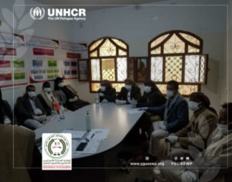 في إطار الاشراف والتنسيق على مواقع استضافة النازحين تم عقد اجتماع موسع مع نقاط الاتصال في مواقع استضافة النازحين في مديرية بني حشيش لعدد (7) مواقع بإجمالي (14) شخص من نقاط الاتصال