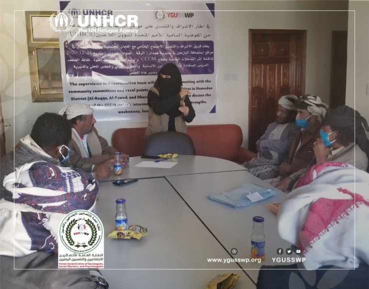 عقد الاجتماع الدوري الختامي لنقاط الاتصال واللجان المجتمعيه في مواقع استضافة النازحين ( الرقه – السواد – ضروان )  بمديرية همدان حيث تم مناقشة العديد من الموضوعات والتي من أهمها مناقشة آثر التدخلات لقطاع CCCM في مخيمات النازحين والتي تمثلت سرعه الاستجابه في التدخلات خاصة للحالات الطارئة إحدى وأهم نقاط القوه لقطاع فريق CCCM في مخيمات النازحين وكذلك العمل بالشراكة الكبيرة مع مجتمع النازحين في عملية التقييم وتحديد الإحتياجات والتخطيط والتنفيذ إحدى أهم نقاط القوه وكذلك الدروس المستفاده التي يمكن الاستناد والإرتكاز عليها في أي تدخلات مستقبلية.