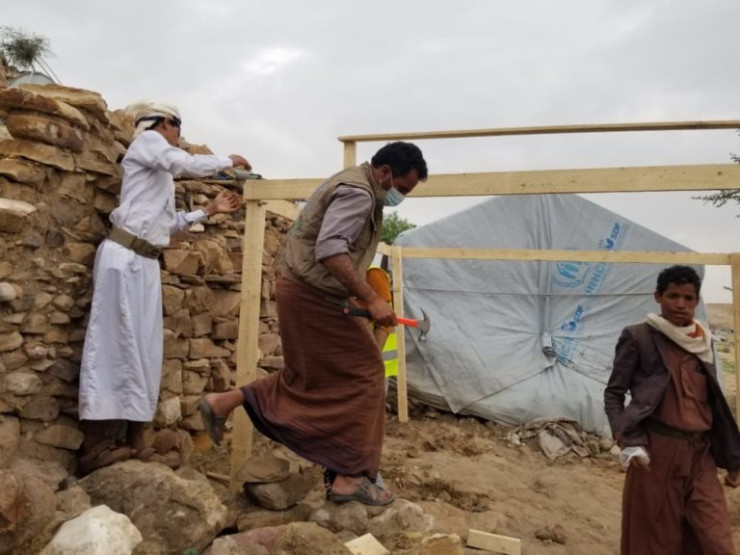 في اطار مشروع خدمات الحماية والمساعدة في مجال الماوئ / المواد الغير غذائية وانشطة إدارة وتنسيق المواقع للأشخاص المستهدفين من المفوضية باليمن ، الممول من المفوضية السامية للأمم المتحدة لشؤون اللاجئين ( UNHCR ) قام فريق YGUSSWP بتوزيع حقائب ماوئ طارئة ESKs على الاسر المتضررة من الامطار الغزيرة والنازحين الجدد في مخيم شبام الغراس ( مديرية بني حشيش ).