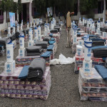 بطانية، 684 دلو ماء، 684 حصير، 342 حقيبة مطبخ، و342 كشافًا.