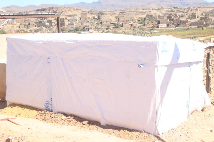 طارئ (خيمة) في مواقع النازحين بمديرية بني حشيش في سوق الثلاث وبيت قهدان، وكذلك