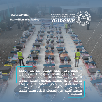 في عالم تمزقه الأزمات وتثقل كاهله التحديات، يظل العمل الإنساني شعلة الأمل التي تخفف من معاناة النازحين والمتضررين، ورسالة إنسانية عابرة للحدود والجغرافيا. في YGUSSWP نؤمن أن العمل الإنساني ليس واجبًا فحسب، بل هو مسؤولية مشتركة، تبدأ بالاستجابة العاجلة وتستمر ببناء قدرات المجتمعات الأكثر ضعفًا لتمكينها من مواجهة المستقبل بكرامة وصمود. نقف اليوم لنحيي العاملين في الميدان، هؤلاء الذين يجسدون التضامن الإنساني بأسمى صوره، ونُجدد التزامنا بمواصلة رسالتنا الإنسانية في تعزيز التضامن العالمي وتمكين المجتمعات. 💙.