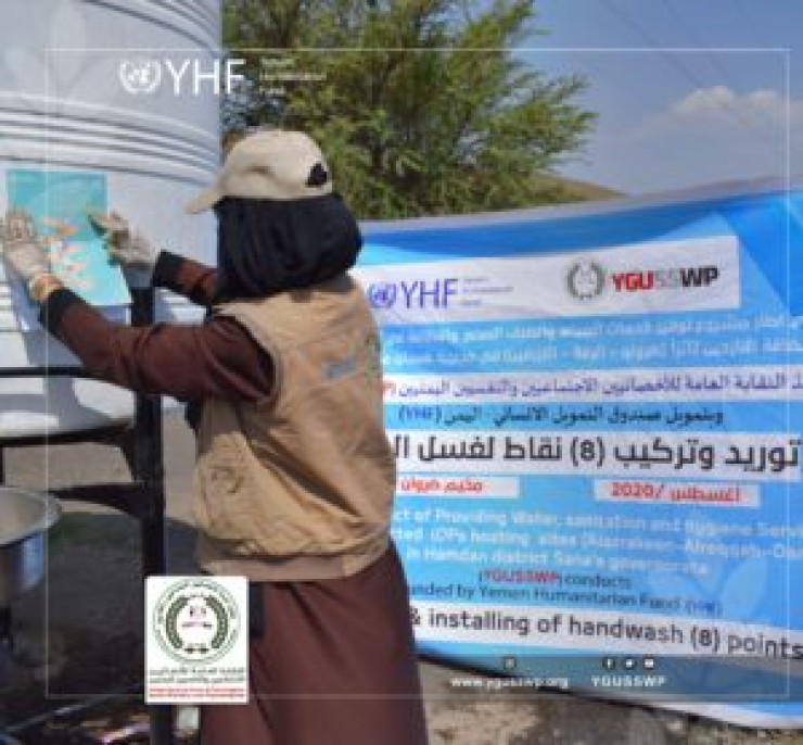 من خلال مشروع توفير خدمات المياه والصرف الصحي والنظافة في أكثر المواقع استضافه للنازحين تأثراً (الازرقين- الرقة – ضروان) منطقة همدان – محافظة صنعاء والممولة من قبل صندوق التمويل الإنساني (YHF)
