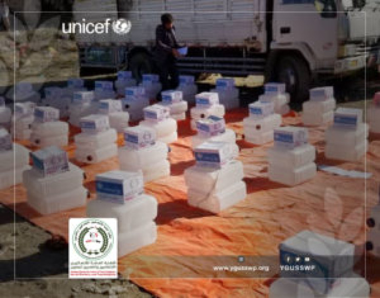 قامت النقابة العامة YGUSSWP بتوزيع 39 حقيبة نظافة وعبوات المياه في مخيم شملان لعدد (39) اسرة في مخيم شملان مديرية همدان محافظة صنعاء.