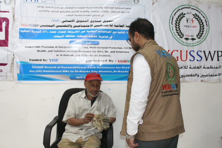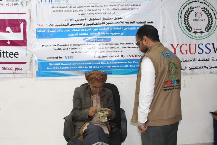 في إطار الاستجابة الإنسانية المستمرة لدعم الأسر النازحة وتعزيز قدرتها على مواجهة الظروف المعيشية الصعبة، تواصل المنظمة العامة للأخصائيين الاجتماعيين والنفسيين اليمنيين (YGUSSWP)، وبدعم سخي من صندوق التمويل الإنساني (YHF)، تنفيذ أنشطة المساعدات النقدية الطارئة للغذاء غير المشروطة والمنقذة للحياة، من خلال صرف الجولة الثانية لـ 56 أسرة نازحة في مديرية مدينة البيضاء – محافظة البيضاء.