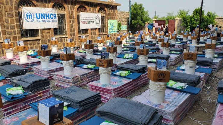 في إطار الاستجابة الإنسانية المتواصلة للنازحين الأكثر ضعفًا والمتضررين من الأمطار والسيول، وبتمويل سخي من المفوضية السامية للأمم المتحدة لشؤون اللاجئين (UNHCR)، تنفذ المنظمة العامة للأخصائيين الاجتماعيين والنفسيين اليمنيين (YGUSSWP) نشاط توزيع المواد غير الغذائية (NFIs) لعدد 615 أسرة نازحة في مديرية وصاب السافل بمحافظة ذمار.