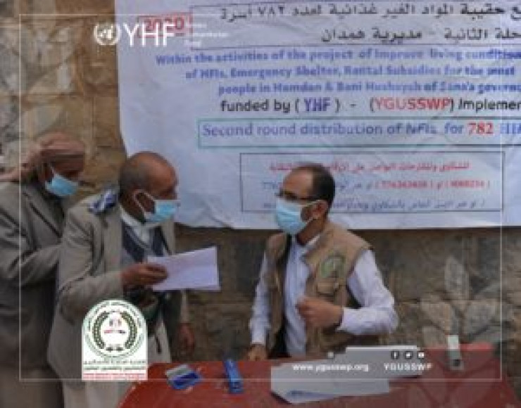 في يوم الاربعاء الموافق 21 أكتوبر 2020 قامت النقابة العامة YGUSSWP بتوزيع 782 من المواد الغير غذائية NFIs لعدد 782 أسرة في مديرية همدان بمحافظة صنعاء وذلك بتمويل صندوق التمويل الإنساني لليمن وبالتنسيق مع السلطات المحلية.
